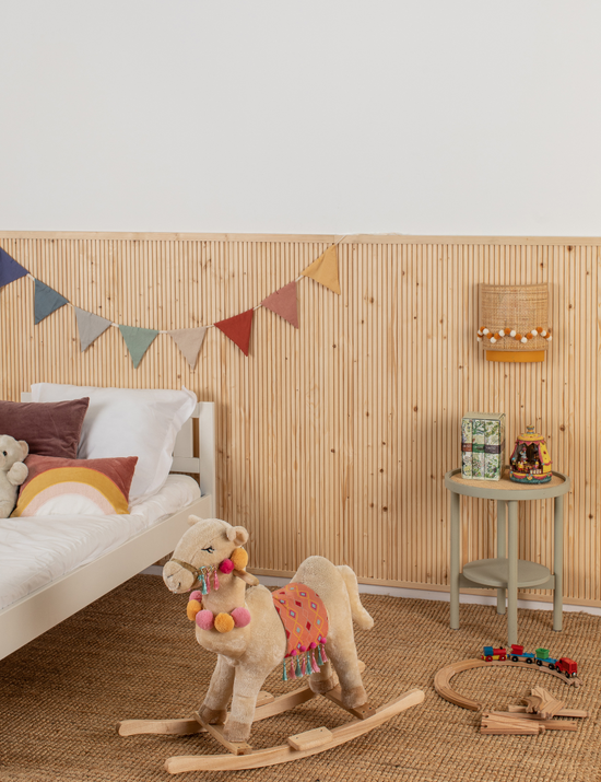 Los revestimientos de madera en media pared funcionan especialmente bien en dormitorios, haciendo las veces de cabecero de madera, haciendo de arrimaderos de pared en habitaciones infantiles, o en largos pasillos, ya que les dan amplitud y son la forma perfecta de decorarlos sin recargarlos. ¿Ya te lo estás imaginando? Hazlo realidad haciéndote con el tuyo.