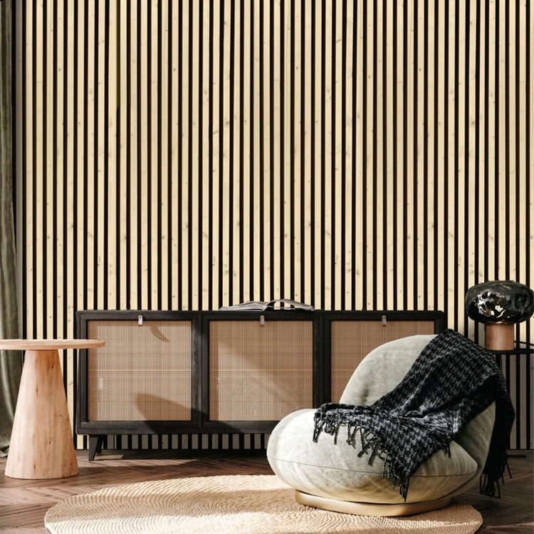 Transforma tus paredes con un toque de elegancia y sostenibilidad, y disfruta de una experiencia acústica mejorada en la habitación con nuestro panel de recubrimiento de madera maciza para paredes.