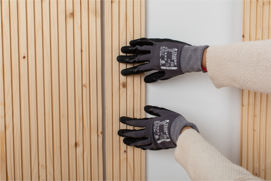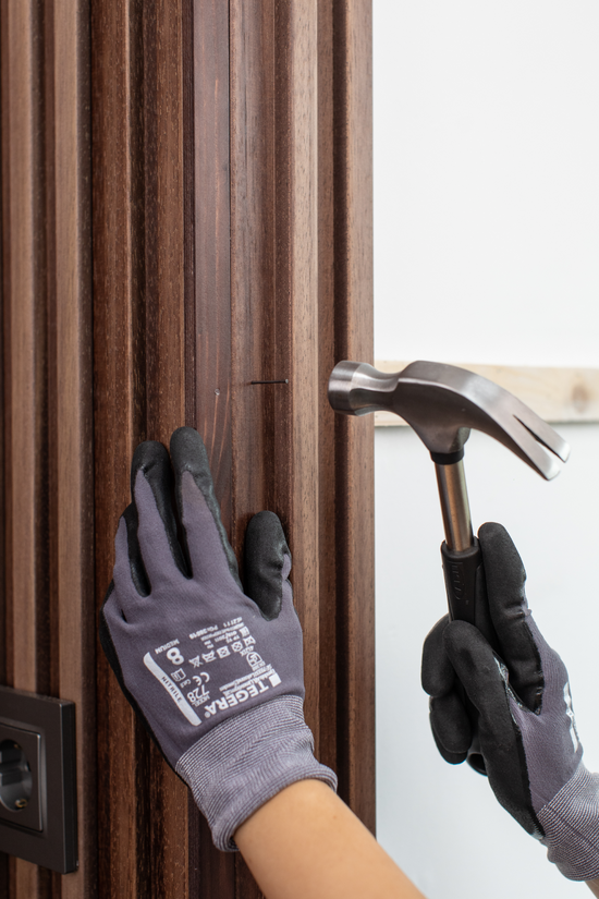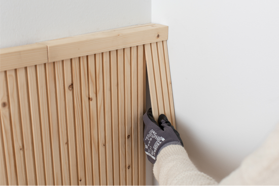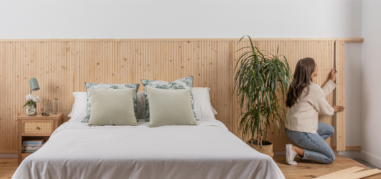 Te recomendamos que mantengas todas las piezas de madera apoyadas sobre la pared durante un par de días. Así, dejarás que se adapten al ambiente.