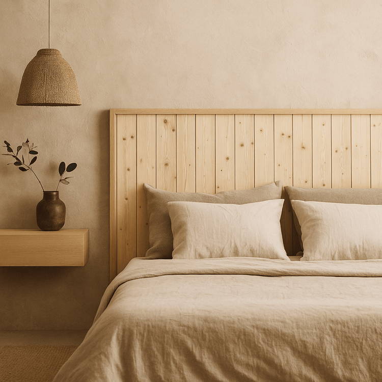 El resultado es un cabecero sólido, limpio y perfectamente ajustado a la medida de la cama.